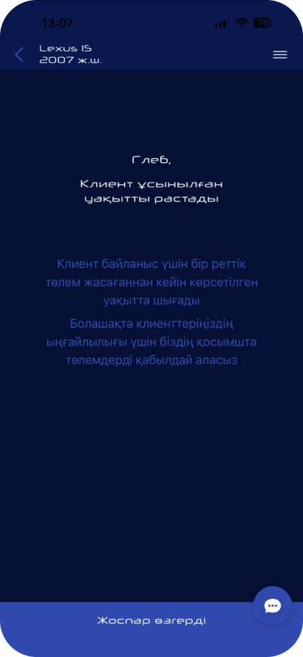 Барлық ақпарат **мерзімсіз** және тегін орналастырылады. Сізге керек нәрсе — Мобильді Автосервис қолданбасында толық мәлімет беру.