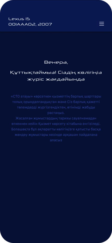 Жылдам төлемдер, 24/7 бақылау, ыңғайлы іздеу және көлік тарихы — бәрі бір қосымшада.